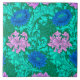 William Morris Chrysanthemums, Aqua and Violet Ceramic Tile
