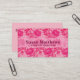 Business card in a vintage William Morris, Art Nouveau, floral print of stylized chrysanthemums, digitally enhanced and colored, in shades of deep fuchsia pink, azalea pink, and burgundy, on a pale pink background
