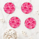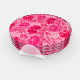 Coasters in a vintage William Morris, Art Nouveau, floral print of stylized chrysanthemums, digitally enhanced and colored, in shades of deep fuchsia pink, azalea pink, and burgundy, on a pale pink background