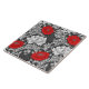 Ceramic tile in a vintage William Morris, Art Nouveau, floral print of stylized chrysanthemums, digitally enhanced and colored, in shades of silver gray /gray and white, accented with deep red, on a dark graphite gray background