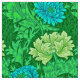 Fabric in a vintage William Morris, Art Nouveau, floral print of stylized chrysanthemums, digitally enhanced and colored, in light and deep lime green and aqua, on an emerald green background