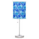 Lamp in a vintage William Morris, Art Nouveau, floral print of stylized chrysanthemums, digitally enhanced and colored, in shades of denim blue and deep indigo on a light blue and white background