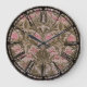 Lovely shades of pink and green dominate this William Morris pattern wall clock. Roman numerals are black for visibility. Hang it in the library, den, beach house, or office. This clock would make a unique housewarming or boatwarming (or houseboat warming) gift. Available in two sizes of round clock, or a square clock. Copyright Scarebaby Design.