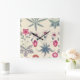 William Morris Daisy Floral Pattern Red Orange Square Wall Clock