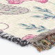 A quality printed throw has its advantages. This is a much finer weave throw than its loopier cousins, and though lighter, it is worth the investment for custom room accessorizing. The back is much prettier than the typical brown, and the fringe on the long sides very vivid, the selvage nicely done. Before photographing, I washed the throw in cold water, delicate, with a thicker woven throw the same size. On tumble dry low, this throw was dry in half the time as the other. This is a very practical quality if you use throws for furniture covers or to wrap up in frequently. The sleekness of the fabric makes it a great layer for accenting or protecting without the feeling of sitting on too much stuff. Perfect for napping or when you feel a light chill coming on. The color printing is beautiful and on this fabric, matched the design and color of my Photoshop image. This is an advantage for blending room fabrics and colors. The fringe on the short sides prints the colors from the design image and therefore varies from the side fringe. I streaked a white fractal line through the plaid pattern to give the illusion of weaving. This printed as crisp as an illusory thread, and put some white in the short side fringe, showing another advantage of print vs loomed- for artistic purposes, line lines, detail, and color integrity can be planned and preserved. My loomed throws have color limitations and more of a needlepoint texture. Print throws reproduce an exact image. The throw felt a little stiff straight out of the package, but this went away in the first delicate wash. Of course I searched the wash water for ink or bleeding and there was none.