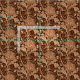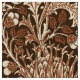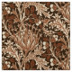 Fabric in a vintage William Morris damask pattern of artichoke plants and leaves, in warm brown and beige, against a dark chocolate brown background, digitally enhanced and colored