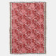 Throw blanket in a vintage William Morris damask pattern of artichoke plants and leaves, in deep red and white, against a dark Chinese red background, digitally enhanced and colored