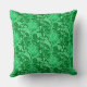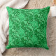 Throw pillow in a vintage William Morris damask pattern of artichoke plants and leaves, in emerald and pale mint green, against a dark emerald green background, digitally enhanced and colored