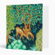 Binder in a William Morris tapestry design of three deer beside a brook in a fantasy forest setting of trees in shades of soft green and aqua, against a dark indigo blue background