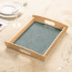 This is a well made, sturdy wooden tray with a flawless black finish and lovely map on the tray surface. It is both vintage & modern at the same time. Looks exactly like the photo; does not disappoint. So nice to find something of quality individually made and not the mass-produced 'shabby chic' merchandise seen in stores. I am so pleased to be able to give this to my college-age niece for her birthday. This can be used as a tray to hold jewelry or toiletries, or hung on the wall as art. The map surface is sealed (it is slightly shiny) so would be moisture resistant. It is well worth the asking price but I was able to apply a sale code as well. Very happy with my purchase. Map is crisp & clear and sealed with a water-resitant finish.