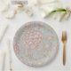 William Morris, Elegant Pink Wild Tulips Soft Blue Paper Plates