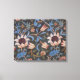 William Morris produced many vintage floral textile designs in the 1800s, and the Evenlode pattern is a drawing of the flower pattern.. The vintage William Morris Evenlode wallpaper pattern is an ornate floral design with flowers and leaves in a lovely old fashioned pink, blue, and brown color.