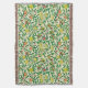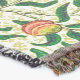 Throw in a William Morris Art Nouveau pattern of lemons, pomegranates, and peaches, with blossoms, on leafy branches - fruit in yellow and coral orange, with green leaves, against a patterned, yellow and white background