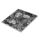 Tile in a William Morris Art Nouveau textile pattern, digitally enhanced and colored - stylized peonies and leaves in shades of light to medium gray / grey, and white against a black background