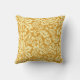 Throw pillow in a vintage William Morris floral damask pattern, digitally enhanced and colored, in pastel mustard yellow on a soft mustard gold background