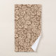 Towel set in a vintage William Morris floral damask pattern, digitally enhanced and colored, in soft beige on a taupe tan background