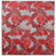 Dinner napkin in a William Morris Art Nouveau textile pattern, digitally enhanced and colored - stylized peonies and leaves in shades of deep Chinese red, vivid red, and white, against a medium silver gray / grey background