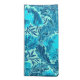Dinner napkin in a William Morris Art Nouveau textile pattern, digitally enhanced and colored - stylized peonies and leaves in shades of dark indigo blue, cobalt blue, and turquoise, against a light aqua background