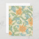 In the foreground a few large orange flowers surrounded by a winding pattern of stems and leaves, behind that is a background pattern of small pale leaves. William Morris at his best: an elaborate pattern, many colors (orange, blue, green, and cream), and still a harmonious whole, everything goes together.