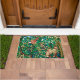 Doormat in a William Morris tapestry design of a fox and a pheasant in flight in a fantasy forest setting of leafy green foliage and fruit trees