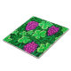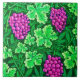 Ceramic tile in a vintage William Morris tapestry pattern of magenta / red-purple grapes against a background of green vines and leaves, digitally enhanced and colored