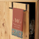 white william morris pattern,oriental red orange floral,persian turquoise teal blue,vintage holland park art,famous british english artist,traditional family surname flowers, "art deco custom monogram", "personalized customized kitchen towel", "personal name art nouveau", "elegant stylish classic dishcloth", "add your own text"