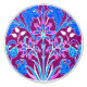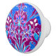 Knob in a vintage William Morris pattern of hyacinths, tulips and leaves, in shades of aqua and cobalt blue, accented with fuchsia and pale pink, on a deep amethyst purple background