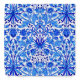 Bandanna in a vintage William Morris pattern of hyacinths, tulips and leaves, in shades of cobalt and cerulean blue, accented with dark navy, on a white background