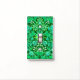 Light switch cover in a vintage William Morris pattern of hyacinths, tulips and leaves, in shades of emerald and jade green, accented with aqua and white, on a deep forest green background
