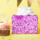 Wrapping paper in a vintage William Morris pattern of hyacinths, tulips and leaves, in shades of violet, plum, and white, accented with deep purple and eggplant, on a pastel lavender / light purple background