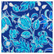Fabric in a vintage William Morris pattern of hyacinths, tulips and leaves, in shades of cobalt and turquoise blue, accented with white, on a deep navy / indigo blue background