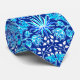 Tie in a vintage William Morris pattern of hyacinths, tulips and leaves, in shades of cobalt and turquoise blue, accented with white, on a deep navy / indigo blue background