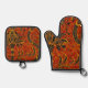 William Morris India Red Floral Oven Mitt & Pot Holder Set