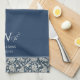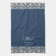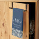 white william morris pattern,navy blue white floral,flowery swirling flower design,famous british english artist,traditional family surname flowers, "classic classy custom monogram", "personalized customized kitchen towel", "personal name swirly swirls", "elegant stylish sophisticated dishcloth", "vintage add your own text"