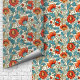 William Morris inspired terracotta pastel blue Wallpaper