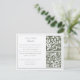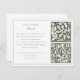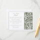 This sophisticated wedding information card is the perfect complement to your invitation suite, adorned with a William Morris inspired design in a classic forest green. The front of the card is beautifully framed with a detailed, botanical illustration, while the back provides ample space to share the finer details of your special day. It's an ideal place to include directions, ceremony specifics, and gift preferences, ensuring your guests are well-informed. The elegant typeface and layout echo the thoughtful attention to detail that your wedding embodies. Direct guests to your wedding website for additional insights, making this card both practical and a keepsake of your beautiful event.