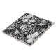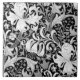 Ceramic tile in a vintage William Morris floral print of stylized lilies and Irises, digitally enhanced and colored, in shades of gray / grey and white on a black background
