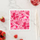 Paper napkins in a vintage William Morris floral print of stylized lilies and Irises, digitally enhanced and colored, in shades of light to deep fuchsia pink and deep wine red on a white background