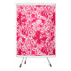 Lamp in a vintage William Morris floral print of stylized lilies and Irises, digitally enhanced and colored, in shades of light to deep fuchsia pink and deep wine red on a white background