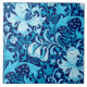 Ceramic tile in a vintage William Morris floral print of stylized lilies and Irises, digitally enhanced and colored, in shades of sky blue and white on a dark indigo blue background