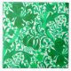 Ceramic tile in a vintage William Morris floral print of stylized lilies and Irises, digitally enhanced and colored, in shades of light to dark jade green on a white background