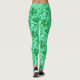 Leggings patterned in a vintage William Morris floral print of stylized lilies and Irises, digitally enhanced and colored, in shades of light to dark jade green on a white background