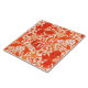 Ceramic tile in a vintage William Morris floral print of stylized lilies and Irises, digitally enhanced and colored, in shades of light to deep Mandarin orange on a white background