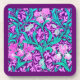 Coaster in a William Morris, Art Nouveau, textile print of irises and leaves, digitally enhanced and colored, in soft orchid and turquoise, on a deep amethyst purple background
