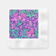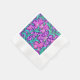 Paper napkins in a William Morris, Art Nouveau, textile print of irises and leaves, digitally enhanced and colored, in soft orchid and turquoise, on a deep amethyst purple background