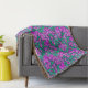 Throw in a William Morris, Art Nouveau, textile print of irises and leaves, digitally enhanced and colored, in soft orchid and turquoise, on a deep amethyst purple background