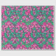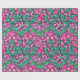 Wrapping paper in a William Morris, Art Nouveau, textile print of irises and leaves, digitally enhanced and colored, in fuchsia and ice pink, peacock green, and white, on a deep wine purple background