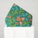 Tissue paper in a William Morris, Art Nouveau, textile print of irises and leaves, digitally enhanced and colored, in orange, lime green, and soft aqua, on a deep turquoise background