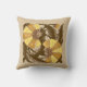 Throw pillow in a vintage William Morris Jacobean floral tile pattern, digitally enhanced and colored, in shades of tan, beige and dark chocolate brown, accented with deep mustard gold and mustard yellow