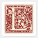 A decorative red antique Letter E monogram initial by English designer William Morris 1834-1896.